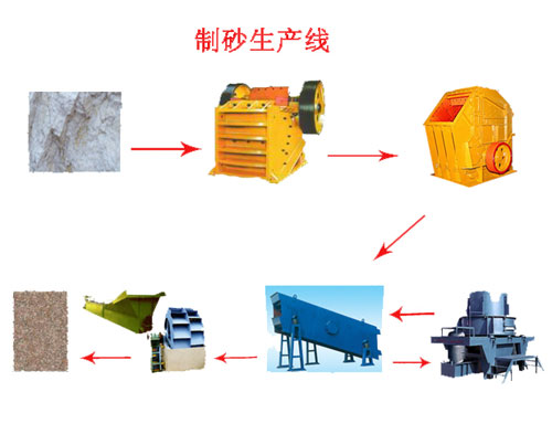 制砂生產(chǎn)線有振動給料機、顎式破碎機、制砂機、振動篩和膠帶傳輸機等設備組合而成。根據(jù)不同的工藝要求,各種型號的設備進行組合,滿足客戶的不同工藝要求。
