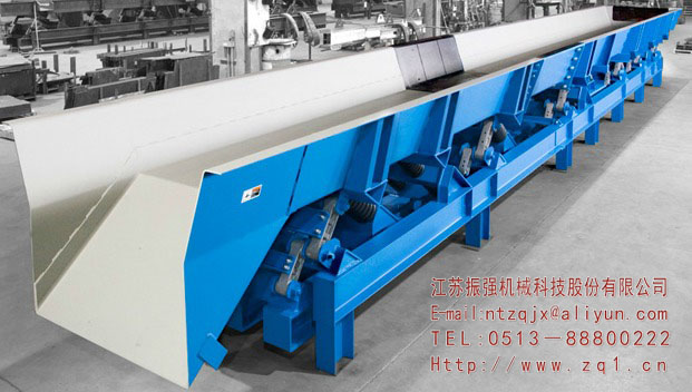 振動輸送機是一種無牽引構(gòu)件的連續(xù)輸送機械。它是利用機械共振原理來輸送物料的。振動輸送機主要由承載構(gòu)件、彈性元件及激振器等組成。激振器足振動輸送機的驅(qū)動機構(gòu)動力源,用以產(chǎn)生激振力,使承載槽產(chǎn)生持續(xù)的振動。激振力的大小直接影響著承載的振幅,其交變頻率即為輸送機的工作頻率。承載體為槽形或管形振動料槽,在振動過程中,將能量傳給物料,使之沿輸送方向作連續(xù)拋擲運動。承載體為參振質(zhì)體,需具有足夠的剛度和強度。減振支承裝置既是整機的支承裝置,又作減振用。