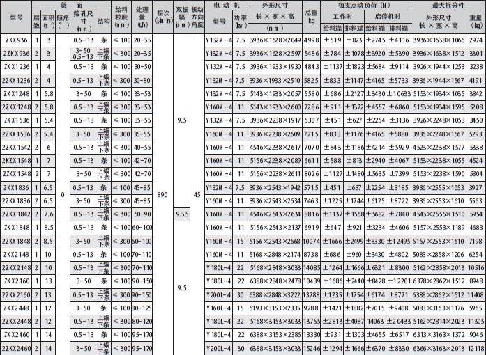 | 篩機(jī)型號(hào) | 振動(dòng)器 | 尺寸代號(hào) | ||||||||||||||||||||||